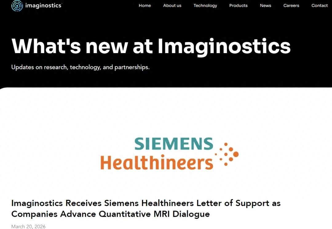 来源:器械之家,未经授权不得转载,且24小时后方可转载2026年3月20日,尚未通过FDA审批的初创公司Imaginostics宣布收到西门子医疗(SiemensHealthineers)的LetterofSupport(支持函),双方就ImagiView™和ImagiSight™两款定量MRI产品